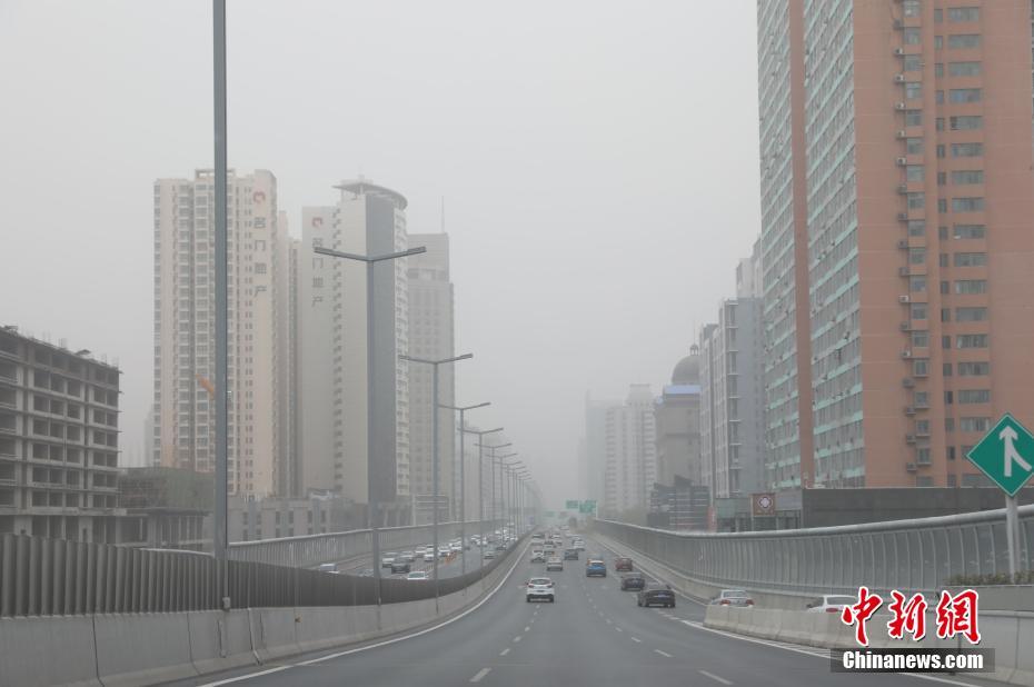 3月29日,河南遭遇大風(fēng)、沙塵天氣,大部分區(qū)域出現(xiàn)浮塵揚(yáng)沙重度及以上污染過(guò)程。圖為在沙塵中的鄭州市區(qū)高架橋。中新社記者 闞力 攝