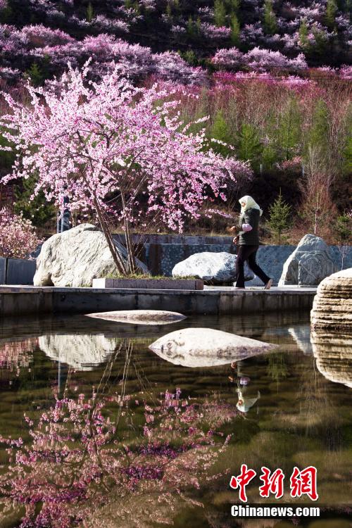 三月,春暖花開的季節(jié)。陣陣春風(fēng)下,六盤山腳下的寧夏固原市涇源縣老龍?zhí)毒皡^(qū)滿山桃花含苞欲放,形成連綿不絕的粉色花海。于勇 攝
