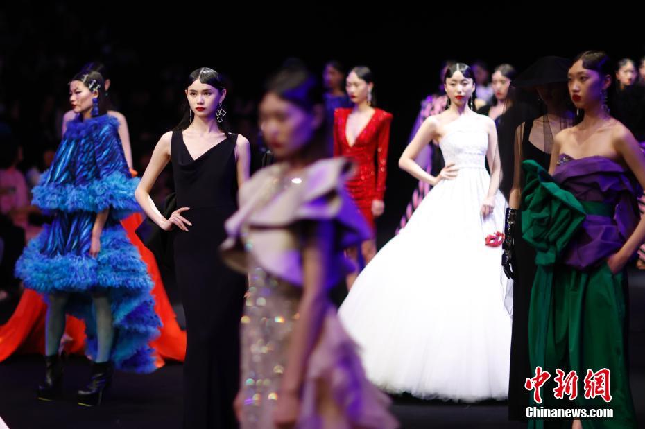 3月30日,模特在T臺(tái)上展示設(shè)計(jì)師邢永設(shè)計(jì)的時(shí)裝。當(dāng)日,YOUG X·邢永高級(jí)定制時(shí)裝發(fā)布會(huì)在北京中國(guó)國(guó)際時(shí)裝周(2021/2022秋冬系列)舉行。中新社記者 盛佳鵬 攝