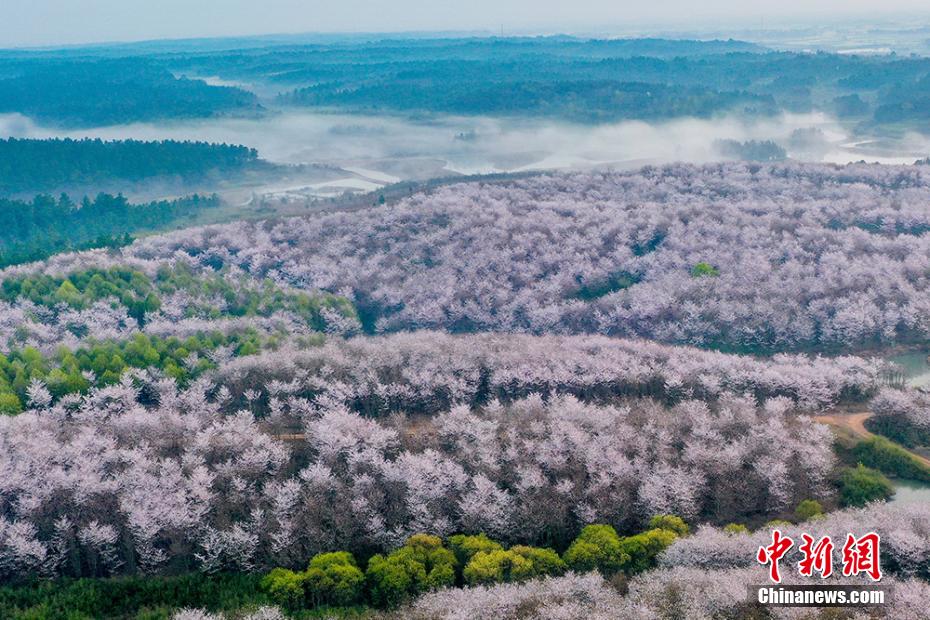 從空中俯瞰,櫻林如云似雪,頗為壯觀。 李曉紅 攝