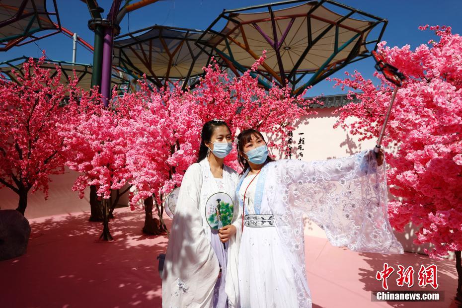 4月3日,游客在北京歡樂谷《仙劍奇?zhèn)b傳》經(jīng)典場景體驗(yàn)區(qū)拍照留念。當(dāng)日,北京歡樂谷2021年春風(fēng)游園季·國潮文化節(jié)拉開大幕。本屆國潮文化節(jié)以“中國,正當(dāng)潮”為主題,將持續(xù)至6月20日,為期79天,融合國風(fēng)漢服、二次元?jiǎng)勇、兒童?jié)等主題元素。 中新社記者 富田 攝