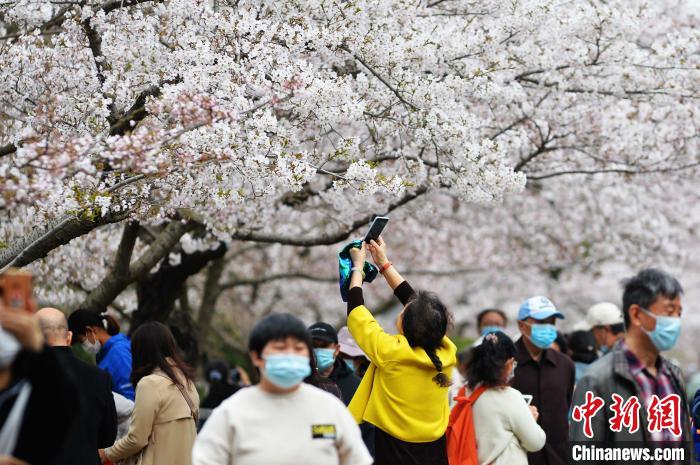 山東青島:清明假期櫻花盛放 引數(shù)十萬游客賞櫻游園(5)