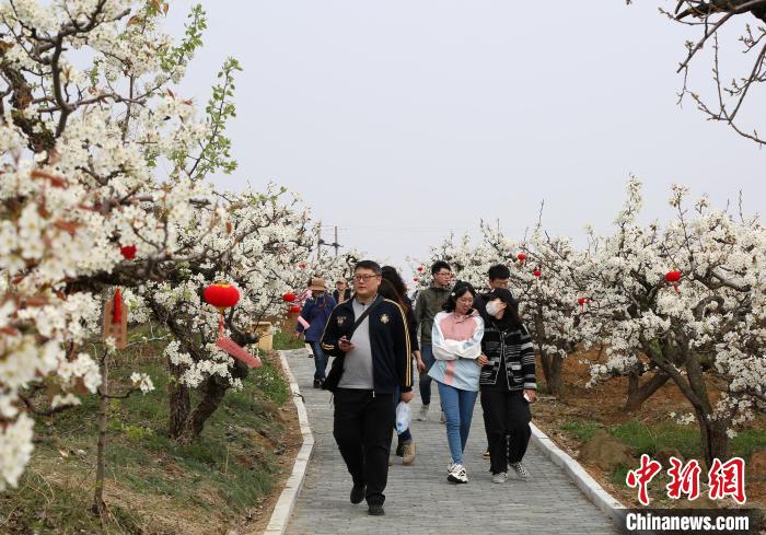 4月10日,游客在山東省煙臺市福山區(qū)高疃鎮(zhèn)肖家溝梨園賞花踏青。當(dāng)日,上萬名游客前來參加梨花節(jié)活動。高疃鎮(zhèn)肖家溝村的梨園有數(shù)百年歷史,目前已形成1000畝的種植規(guī)模。近年來,當(dāng)?shù)匾劳欣鎴@資源,連續(xù)舉辦梨花節(jié)等活動,推動觀光農(nóng)業(yè)發(fā)展,帶動群眾增收致富。胡斌 攝