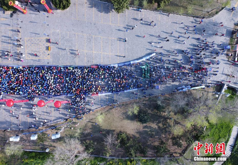 3000多名跑者從山東蓬萊快樂(lè)出發(fā),沿著蓬萊閣、八仙雕塑廣場(chǎng)、八仙過(guò)海景區(qū)奔跑。 胡斌 攝
