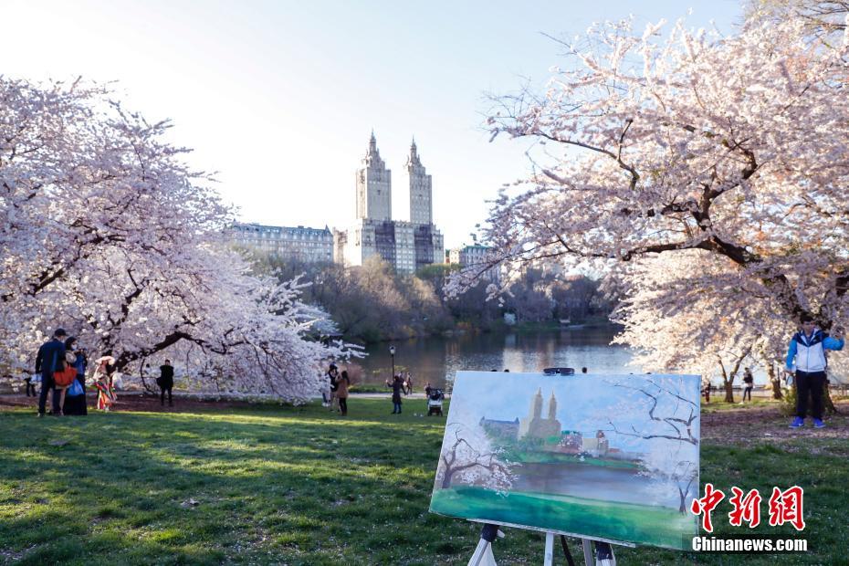 當?shù)貢r間4月13日,美國紐約中央公園鮮花盛開春色滿園,民眾在公園中游玩享受春光。中新社記者 廖攀 攝