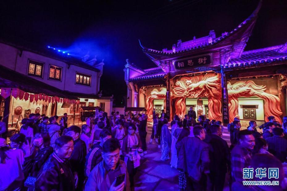 4月17日,杭州市臨安區(qū)河橋古鎮(zhèn)景區(qū)內(nèi),游客在體驗(yàn)國漫主題情景劇的夜游項(xiàng)目。新華社記者 徐昱 攝 圖片來源:新華網(wǎng)