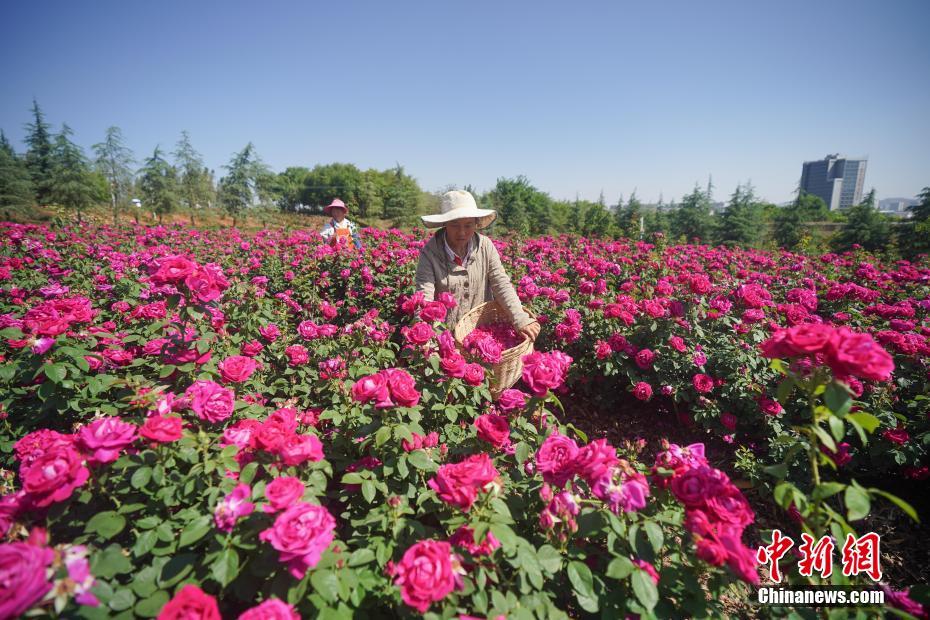 4月20日,工作人員采摘玫瑰花。近日,云南昆明,云南大學呈貢校區(qū)近40畝食用玫瑰花進入盛花期,成為校內(nèi)一景,吸引眾多師生到此散步拍照。同時,學校食堂以玫瑰花為原料,開發(fā)出數(shù)十種鮮花美食,受到學校師生的歡迎。中新社記者 劉冉陽 攝