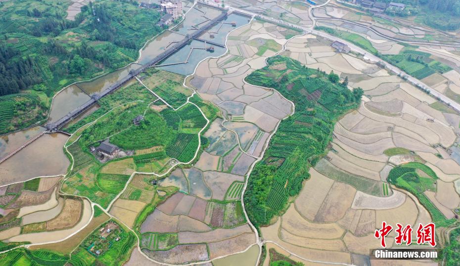 注滿春水的稻田如明鏡一般。 龔普康 攝