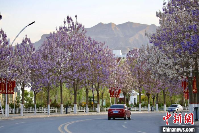 青海黃河岸畔特色小鎮(zhèn):泡桐花如紫色裙子掛滿枝頭(4)