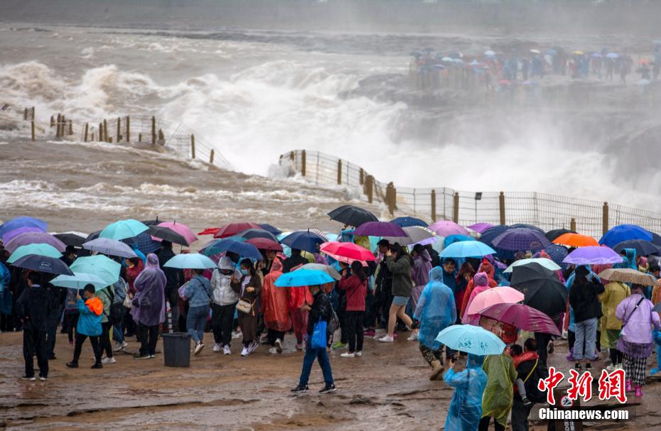 游客在奔騰咆哮的壺口瀑布岸邊觀賞。 蘭華 攝