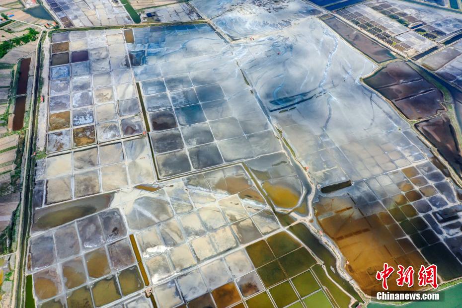 海邊鹽田宛如一塊鋪在大地上的“顏料盤”。 李信君 攝
