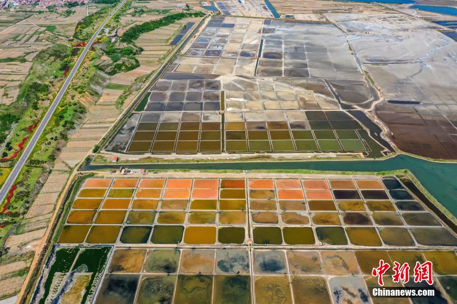 整齊排列的鹽田呈現(xiàn)出多種顏色。李信君 攝