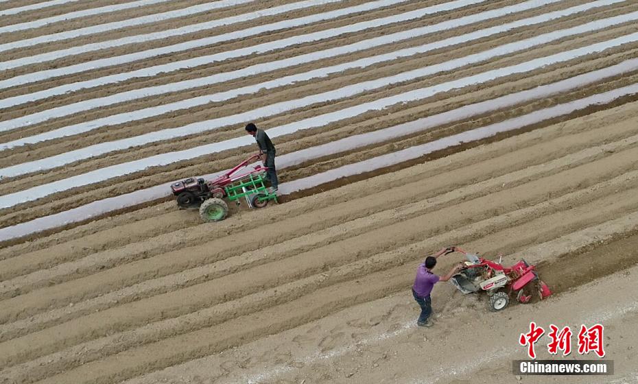 起壟覆膜機(jī)在田壟間來回穿梭。袁選國 攝