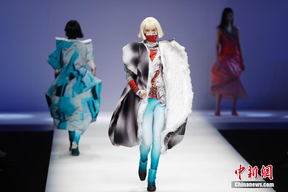 5月15日,模特在北京展示中國美術(shù)學(xué)院設(shè)計(jì)藝術(shù)學(xué)院2021屆畢業(yè)生設(shè)計(jì)的時裝作品。 中新社記者 盛佳鵬 攝