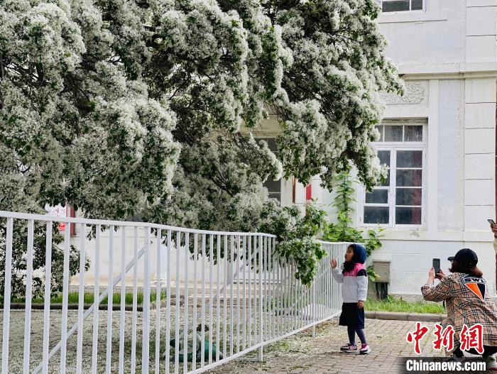 游人在流蘇樹(shù)前拍照留念!∏⒅ 攝