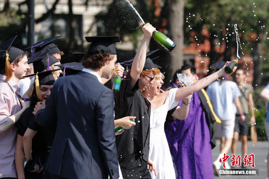 當(dāng)?shù)貢r(shí)間5月19日,美國紐約大學(xué)的畢業(yè)生在曼哈頓華盛頓廣場歡慶畢業(yè)時(shí)刻。 中新社記者 廖攀 攝