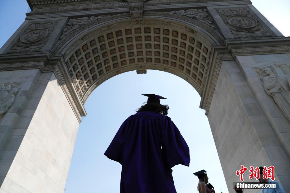 當(dāng)?shù)貢r間5月19日,美國紐約大學(xué)的畢業(yè)生在曼哈頓華盛頓廣場歡慶畢業(yè)時刻。 中新社記者 廖攀 攝