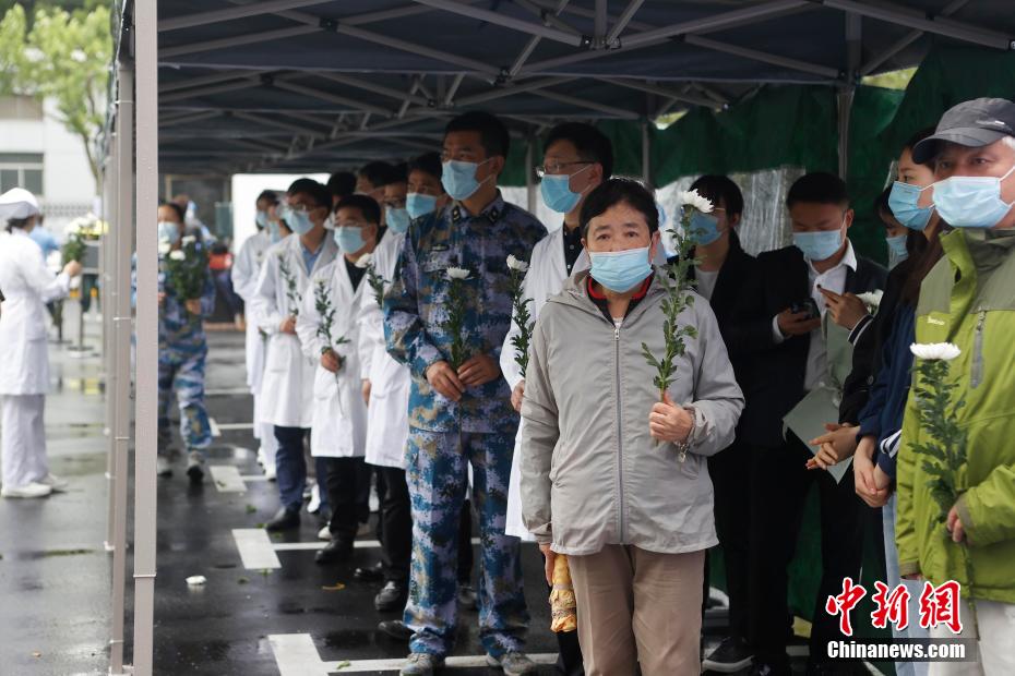 圖為民眾和醫(yī)院醫(yī)護人員冒雨來到上海東方肝膽外科醫(yī)院,吊唁吳孟超院士。 殷立勤 攝
