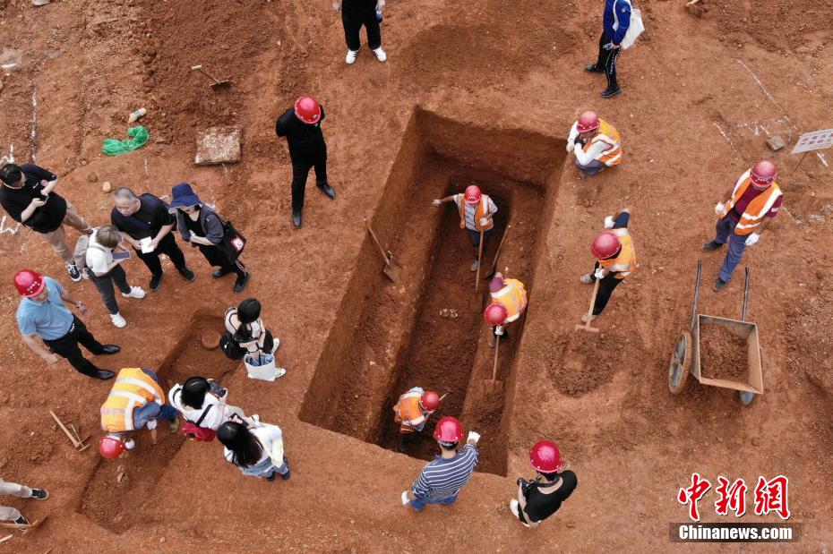 5月28日,考古人員正在湖南省地質(zhì)中學一在建項目工地進行考古勘探及發(fā)掘工作。據(jù)長沙市文物考古研究所工作人員介紹,目前這里共發(fā)現(xiàn)古墓葬42座,已經(jīng)發(fā)掘24座。從已發(fā)掘的墓葬形制及出土文物分析,5座土坑豎穴墓為西漢時期、3座磚室墓為東漢晚期、11座土坑豎穴墓為唐宋時期、另5座由于未出土遺物而時代不明,墓葬級別大多為中小型平民墓葬,少量為中等貴族墓葬。楊華峰 攝