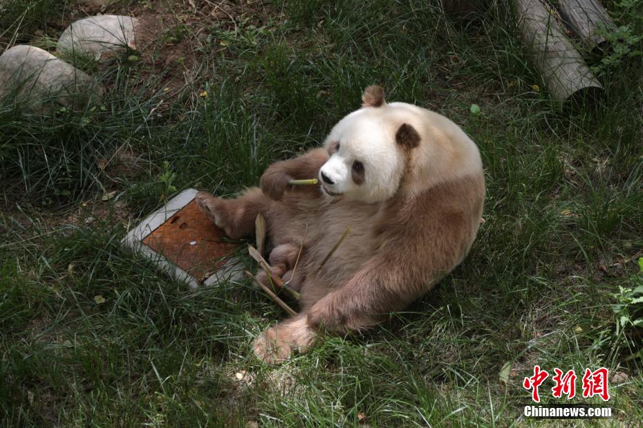 全球唯一圈養(yǎng)棕色大熊貓“俏皮”亮相(3)