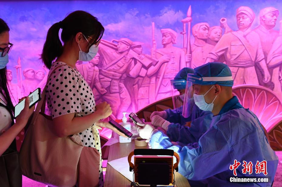 5月27日,廣東省廣州市,市民在海珠廣場臨時核酸檢測點登記、確認個人信息。 中新社記者 陳楚紅 攝