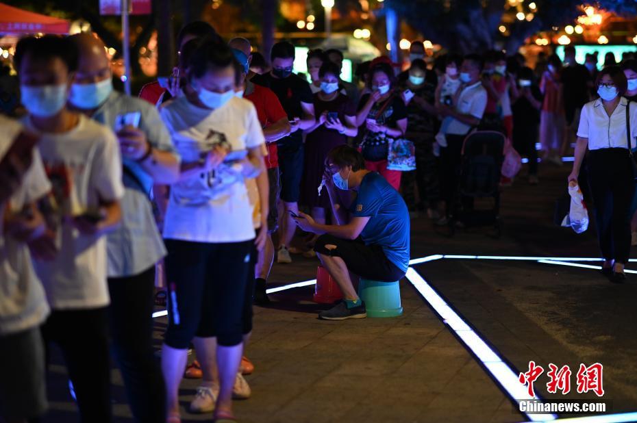 5月27日,廣東省廣州市,民眾在海珠廣場臨時核酸檢測點排隊等待核酸檢測。 中新社記者 陳楚紅 攝