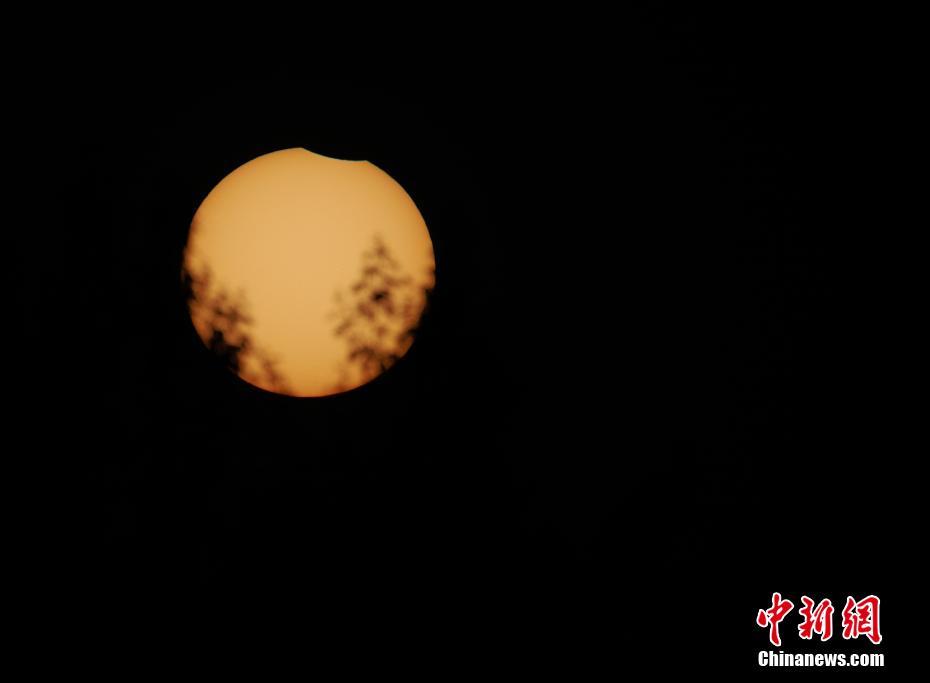 6月10日,新疆巴音郭楞蒙古自治州庫爾勒市上空出現(xiàn)日偏食。中新社發(fā) 薛兵 攝