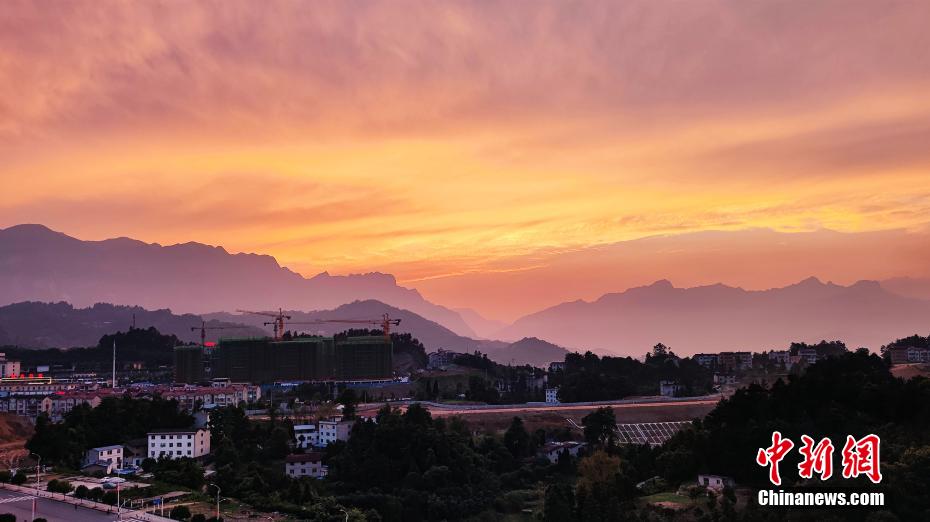 湖北秭歸現(xiàn)“火燒云” 場面唯美壯觀(2)