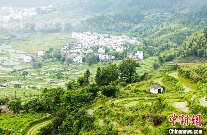 梯田與遠山、粉墻黛瓦的村落相互輝映,構(gòu)成一幅美麗的田園水墨畫。 胡敦煌 攝
