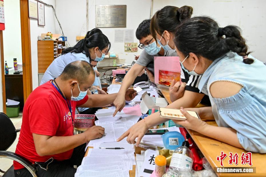 6月14日,廣東省廣州市,海珠區(qū)瑞寶街南洲名苑小區(qū)居民辦理住戶臨時出入卡。當日,廣州市解除海珠、天河、白云、黃埔、番禺5個區(qū)11個區(qū)域的封閉、封控管理措施。 中新社記者 陳驥旻 攝