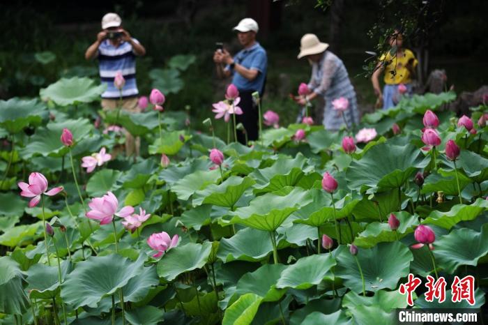 6月14日,江蘇省南京市,莫愁湖公園盛開的荷花點綴綠葉之中,為初夏增添了一道亮麗的風(fēng)景。據(jù)介紹,南京莫愁湖自古就有種植荷花的歷史,目前園內(nèi)有3萬平方米的荷塘,30多萬株荷花,涵蓋了400多個品種。泱波 攝
