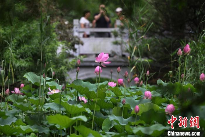 市民和游客欣賞盛開(kāi)的荷花。 泱波 攝