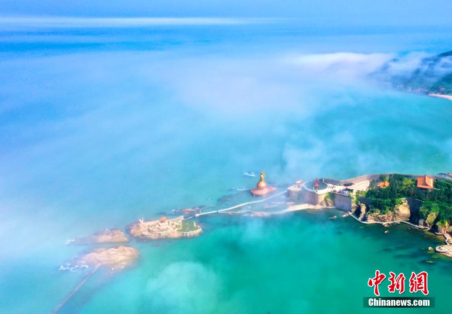 航拍海霧中的山東榮成成山頭。(無人機(jī)拍攝) 李信君 攝