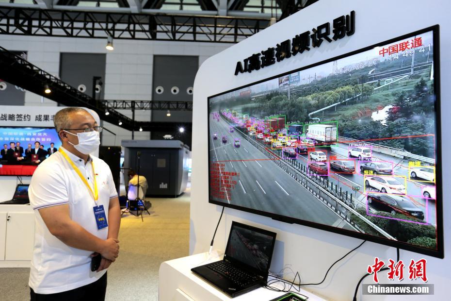 6月16日,陜西西安,參展人員觀看AI高速視頻識別系統(tǒng)。當(dāng)日,2021西部數(shù)字經(jīng)濟博覽會在西安開幕。 中新社記者 張遠(yuǎn) 攝