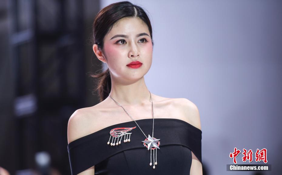 6月22日晚,山東工藝美術學院設計·生活2021時尚發(fā)布會在山東濟南上演。學生們設計、制作的90余套作品參展。圖為山東工藝美術學院表演專業(yè)的學生展示首飾。中新社記者 張勇 攝