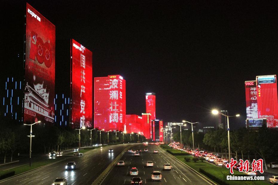 6月26日晚,山東濟(jì)南上演以“熱烈慶祝中國共產(chǎn)黨成立100周年”為主題的燈光秀,以光影表達(dá)這座城市對中國共產(chǎn)黨百年華誕的祝福。 中新社記者 孫宏瑗 攝