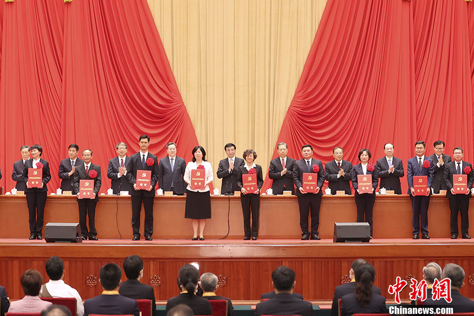 6月28日,全國“兩優(yōu)一先”表彰大會(huì)在北京人民大會(huì)堂舉行。中共中央政治局常委、中央書記處書記王滬寧,中共中央政治局常委、中央紀(jì)委書記趙樂際等為受表彰的個(gè)人和集體代表頒獎(jiǎng)。 中新社記者 盛佳鵬 攝