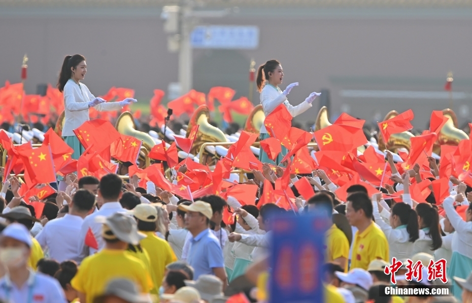 7月1日,慶祝中國共產(chǎn)黨成立100周年大會在北京天安門廣場隆重舉行。圖為建黨百年慶典合唱團(tuán)成員在現(xiàn)場排練。中新社記者 侯宇 攝