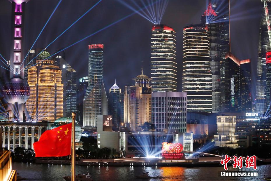 6月30日晚,在慶祝中國共產(chǎn)黨成立100周年之際,以“永遠(yuǎn)跟黨走”為主題的光影秀正式亮相黃浦江,游客齊聚外灘觀賞光影秀。殷立勤 攝