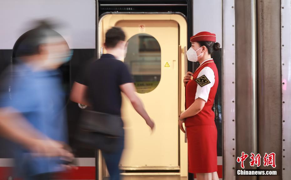 6月30日,G115次列車?吭诒本┠险居蚵每汀.(dāng)日,京滬高鐵開通運營滿10周年。京滬高鐵開通運營10年來,累計安全運送旅客13.5億人次。 中新社記者 賈天勇 攝