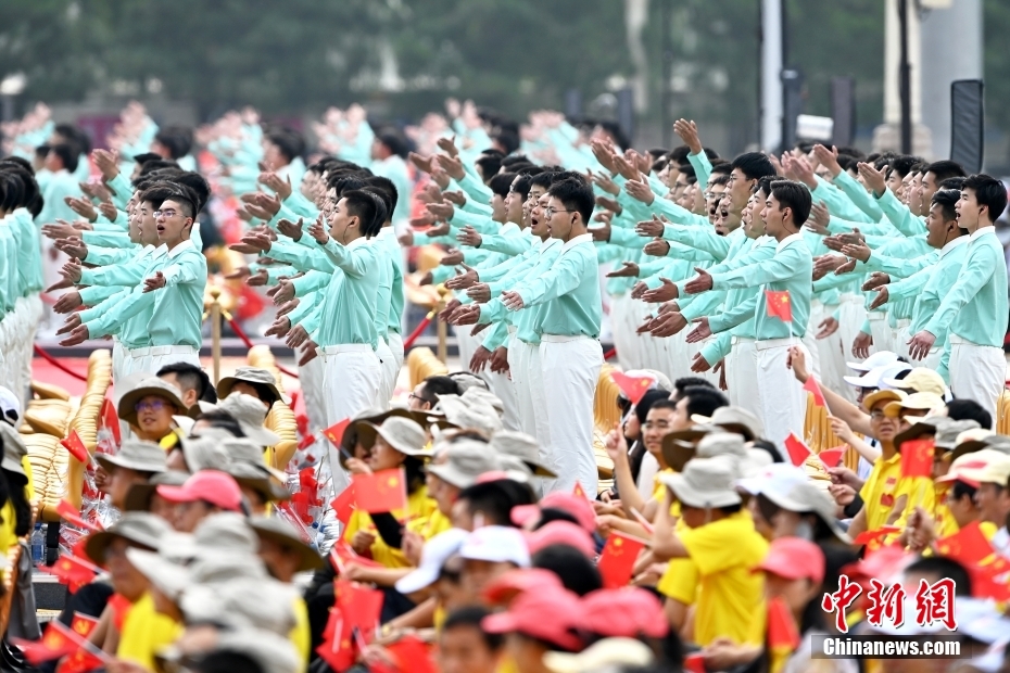 7月1日上午,慶祝中國共產(chǎn)黨成立100周年大會在北京天安門廣場隆重舉行。圖為慶祝大會現(xiàn)場。中新社記者 盛佳鵬 攝