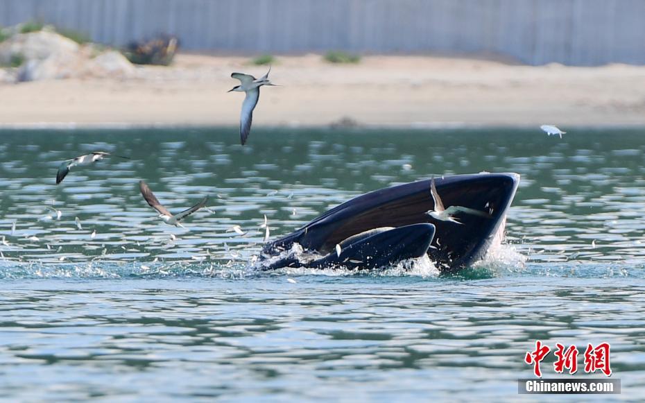 7月4日,在廣東省深圳市大鵬灣海域拍攝的布氏鯨。日前,一頭布氏鯨出現(xiàn)在大鵬灣海域,此后一直在該海域逗留。經(jīng)專家觀測(cè),這是一條體長(zhǎng)8米左右的小型布氏鯨,目前健康狀況良好。連日來,深圳市大鵬新區(qū)相關(guān)部門已加強(qiáng)對(duì)相關(guān)海域的監(jiān)測(cè)和管理。 中新社記者 陳文 攝