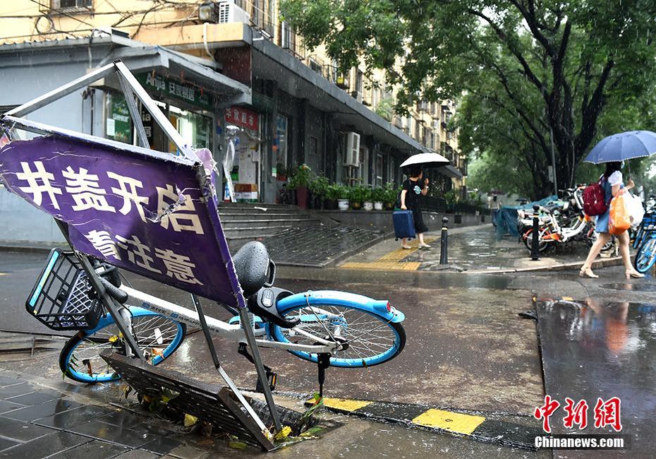 小區(qū)門口為防止積水,將井蓋打開。中新網(wǎng)記者 李霈韻 攝