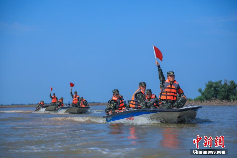 7月12日,武警第一機(jī)動(dòng)總隊(duì)某支隊(duì)組織官兵在黃河流域河南段進(jìn)行水上沖鋒舟實(shí)操訓(xùn)練。訓(xùn)練設(shè)置編隊(duì)航行、“S”形繞避障礙物等項(xiàng)目,著力提升該部隊(duì)陌生水域執(zhí)行搶險(xiǎn)救援能力。 中新社發(fā) 蔡霖偉 攝