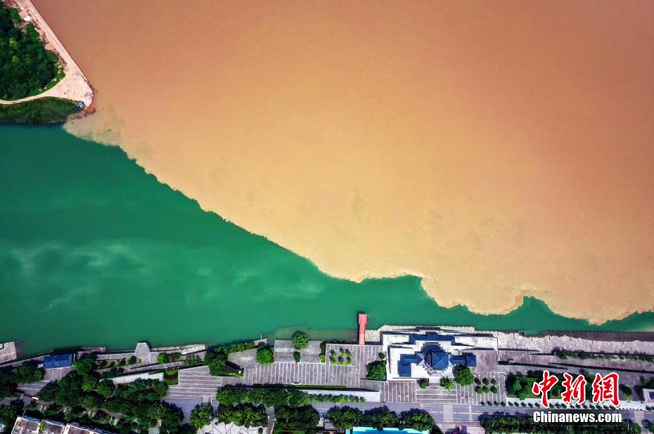 長(zhǎng)江清江現(xiàn)奇特分界景觀。曹禮達(dá) 攝