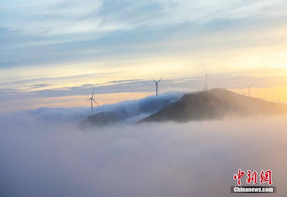7月21日,位于江西省贛州市南康區(qū)的尖峰嶺霧氣彌漫,巨型風(fēng)車(chē)錯(cuò)落在崇山峻嶺中。朱璐璐 攝