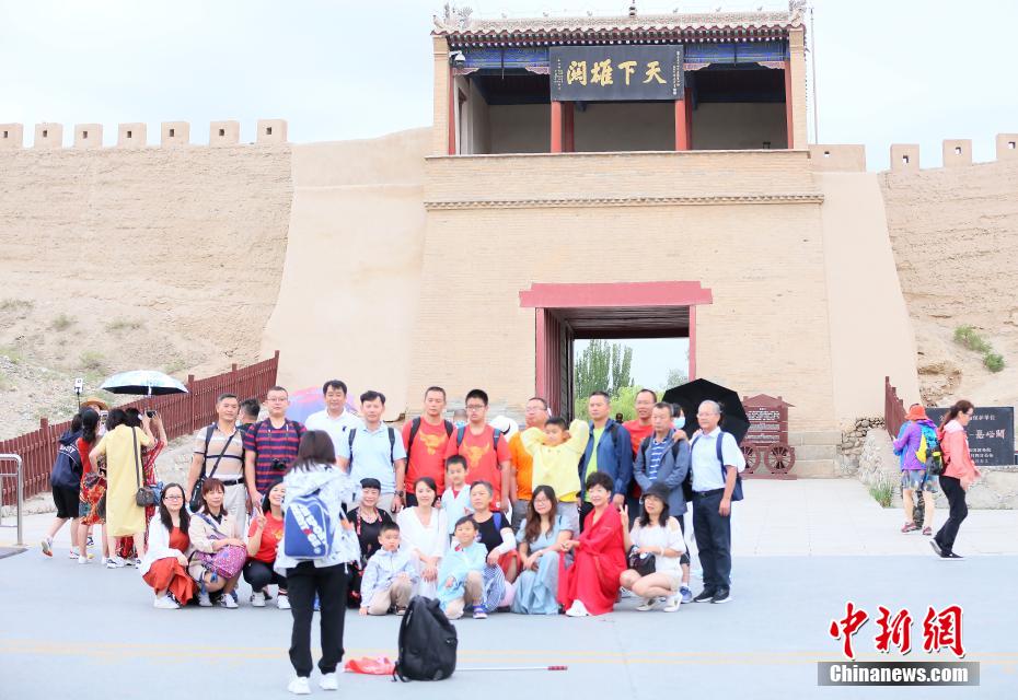 游客在嘉峪關(guān)關(guān)城前合影留念。高展 攝