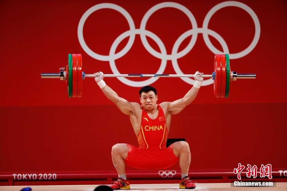 北京時(shí)間7月25日晚,在東京奧運(yùn)會(huì)男子舉重67公斤級(jí)比賽中,中國(guó)選手諶利軍以抓舉145公斤、挺舉187公斤、總成績(jī)332公斤奪冠,打破挺舉和總成績(jī)奧運(yùn)紀(jì)錄的同時(shí),也為中國(guó)體育代表團(tuán)摘得本屆奧運(yùn)會(huì)的第六金。圖為諶利軍在比賽中。 中新社記者 韓海丹 攝