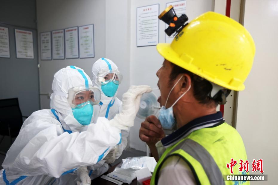 浦口區(qū)江浦街道組織醫(yī)護(hù)人員走進(jìn)建筑工地,為建筑工人做核酸檢測(cè)。 泱波 攝
