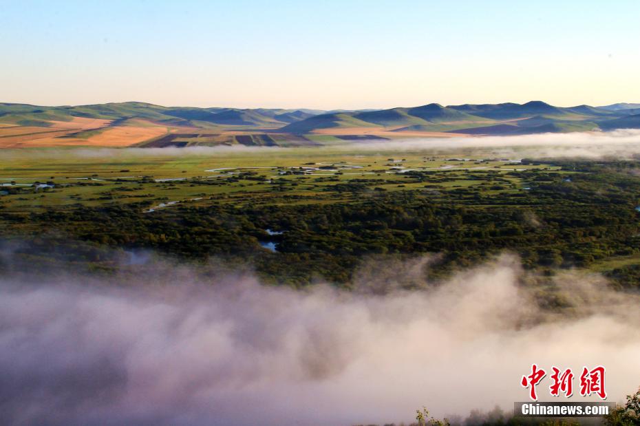 云霧繚繞中的額爾古納濕地若隱若現(xiàn),似一幅水墨畫。 姜立春 攝